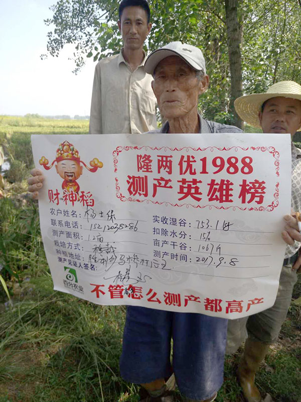 在今年財神稻經(jīng)歷前期連續(xù)的高溫天氣和后期連續(xù)的陰雨天氣后,依舊表現(xiàn)的如此強勢,讓廣大的種植戶們贊不絕口。財神稻——隆兩優(yōu)1988用災(zāi)年穩(wěn)產(chǎn)、豐年高產(chǎn)的潛能書寫了一個又一個奇跡!