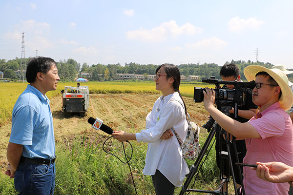 省農(nóng)業(yè)技術(shù)推廣總站調(diào)研員羿國(guó)香說(shuō)到:“產(chǎn)量情況是很不錯(cuò)的,因?yàn)榻衲晔歉邷責(zé)岷δ?。很多地方的中稻受到了高溫?zé)岷τ绊?,這塊田,從我們目前檢測(cè)的情況來(lái)看,應(yīng)該是產(chǎn)量最高的田塊。在今年我參加的測(cè)產(chǎn)實(shí)驗(yàn)里,這次的產(chǎn)量是很高,達(dá)到了734公斤。我們實(shí)施農(nóng)業(yè)部水肥一體化的項(xiàng)目示范,主要是想通過(guò)省水、控肥來(lái)達(dá)到高產(chǎn)的目標(biāo)。今天的田間測(cè)產(chǎn),實(shí)產(chǎn)達(dá)到了700多公斤,超出了我們的目標(biāo)。其次,我們通過(guò)技術(shù)來(lái)省水,通過(guò)品種配合我們的水肥一體化技術(shù),通過(guò)干濕管理,減少水分的消耗,通過(guò)水肥一體化來(lái)提高肥的效力,水肥減少了,肥的效率提高了,投入減少的話,對(duì)水田的污染也會(huì)減少,這是一種新的發(fā)展理念,達(dá)到綠色高效的發(fā)展。今天這個(gè)示范,起到了完滿的成功。”