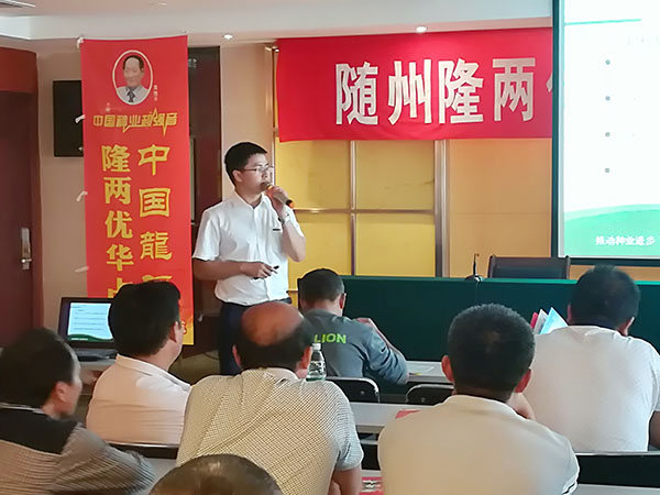 會(huì)議上,亞華種業(yè)黃凱經(jīng)理向隨州各鄉(xiāng)鎮(zhèn)經(jīng)銷商分享了隆兩優(yōu)華占優(yōu)勢(shì)特點(diǎn)和湖北各地表現(xiàn)情況。隨州新神農(nóng)種業(yè)公司總經(jīng)理萬(wàn)天江先生總結(jié)發(fā)言隆兩優(yōu)華占是個(gè)安全、可靠大品種、大品牌,值得大家去努力推廣的好品種。