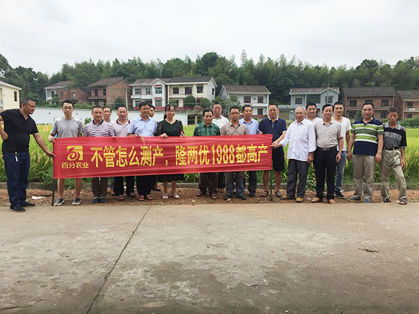 冒著烈日在田間細(xì)看了30多分鐘,經(jīng)銷商們個(gè)個(gè)都滿頭大汗,還是非常高興的拍下此次觀摩會(huì)的全體合影。從田間回到一個(gè)農(nóng)家飯店后開(kāi)始室內(nèi)會(huì)議,百分農(nóng)業(yè)梅經(jīng)理和醴陵代理商吳總分別就此次觀摩會(huì)做了總結(jié),并詳細(xì)介紹了該品種的特征特性、高產(chǎn)栽培措施等,表達(dá)了對(duì)公司的感激之情??偟膩?lái)說(shuō),此次觀摩會(huì)是非常成功的,我們相信,在吳總的帶領(lǐng)下財(cái)神稻將在醴陵大放異彩,創(chuàng)造新的種業(yè)神話!