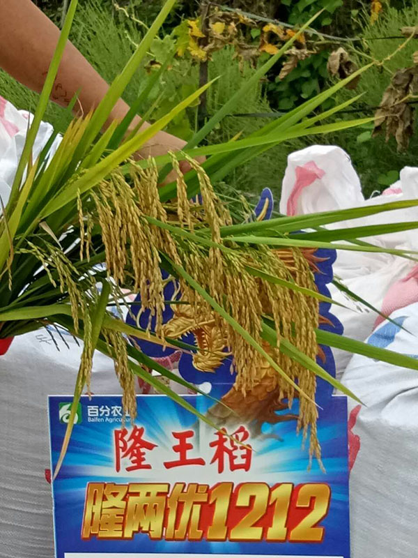隆王稻——隆兩優(yōu)1212隨著徐徐秋風(fēng)搖曳著身姿,迎接著一年一度的秋收。9月13日上午農(nóng)戶賀祖發(fā)已備好收割機,萬事俱備,只等著懷化市種子經(jīng)銷商王梅香及附近的種植大戶來見證“隆王稻”的收割現(xiàn)場。