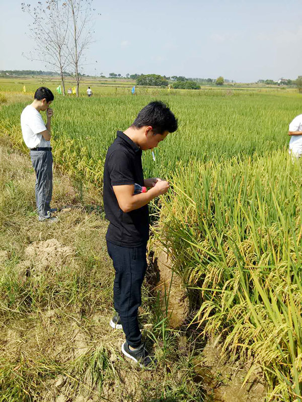 早上10點,在望江縣惠民農資王棟總經理的帶領下,經銷商朋友們在隆兩優(yōu)1212示范田里紛紛自拍留影。大家的一致意見是:9月10日的臺風讓好多品種在沒有黃熟的情況下,發(fā)生了大面積的倒伏,隆兩優(yōu)1212在望江縣內沒有一處發(fā)生倒伏現象,必須要和隆王稻合個影!這品種值得推廣!賣的放心!
