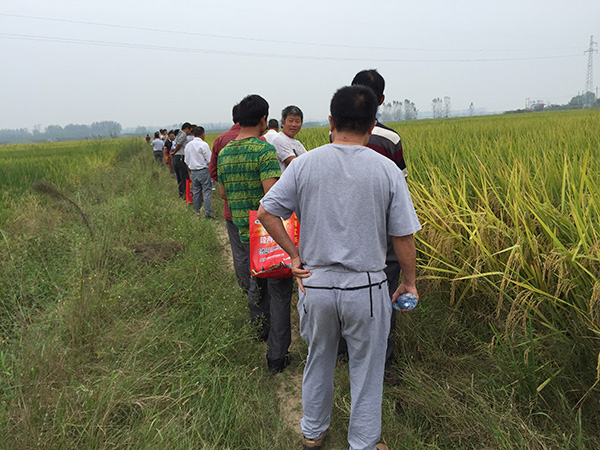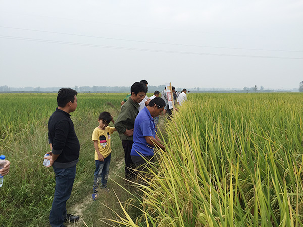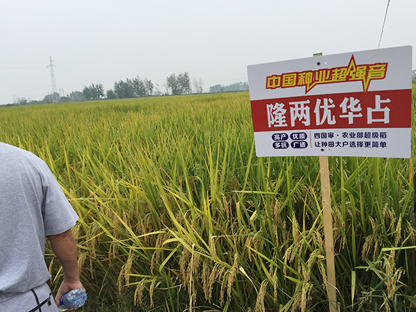 又是一年收獲季,安徽潁上縣隆兩優(yōu)華占種植田里稻浪滾滾、稻花飄香,到處一片豐收在望的景象。2017年,對于農(nóng)業(yè)生產(chǎn)、水稻種植來說又是一個不平凡的年份。8月中旬正值水稻抽穗楊花期間連續(xù)20多天37°C(高溫甚至達(dá)到41°C)的極端天氣考驗,對于水稻品種 來說就是一場生與死的考驗。面對極端高溫的氣候,潁上縣大面積種植隆兩優(yōu)華占頂住了考驗,獨領(lǐng)風(fēng)騷,一枝獨秀。幾乎未受到影響,不但穩(wěn)產(chǎn)而且大面積高產(chǎn),真是高溫天氣“烤”驗出的好品種。