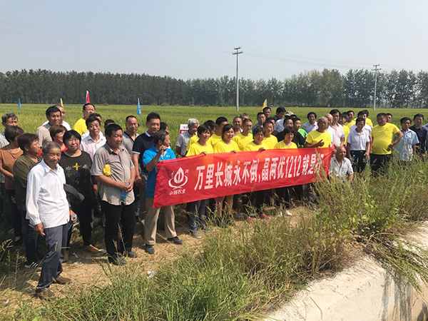 2017年9月18日上午,江蘇睢寧晶兩優(yōu)1212觀摩會(huì)正式拉開序幕。睢寧各個(gè)地方的零售商及核心種植戶陸續(xù)來(lái)到睢寧邱集鎮(zhèn)的晶兩優(yōu)1212示范田。剛來(lái)到田間大家就被映入眼簾的晶兩優(yōu)1212震撼到了。是什么讓他們這么震撼呢?